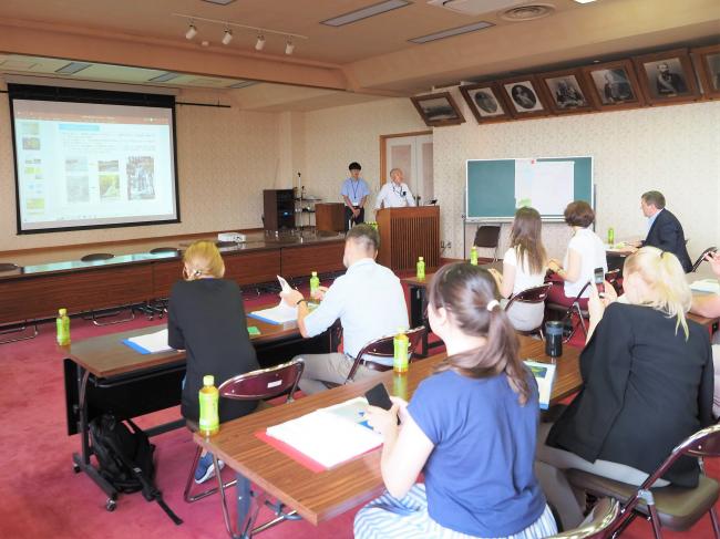 7月13日に、安積疏水土地改良区事務所で安積疏水の歴史や仕組み等について説明を受けました。その後、水管理センターで自動運転を行う計器類を見学しました。ウクライナの皆さんは、水路の管理状況をスマートフォンで把握できるシステム等に感心していました。